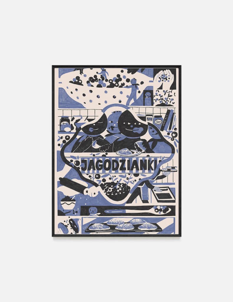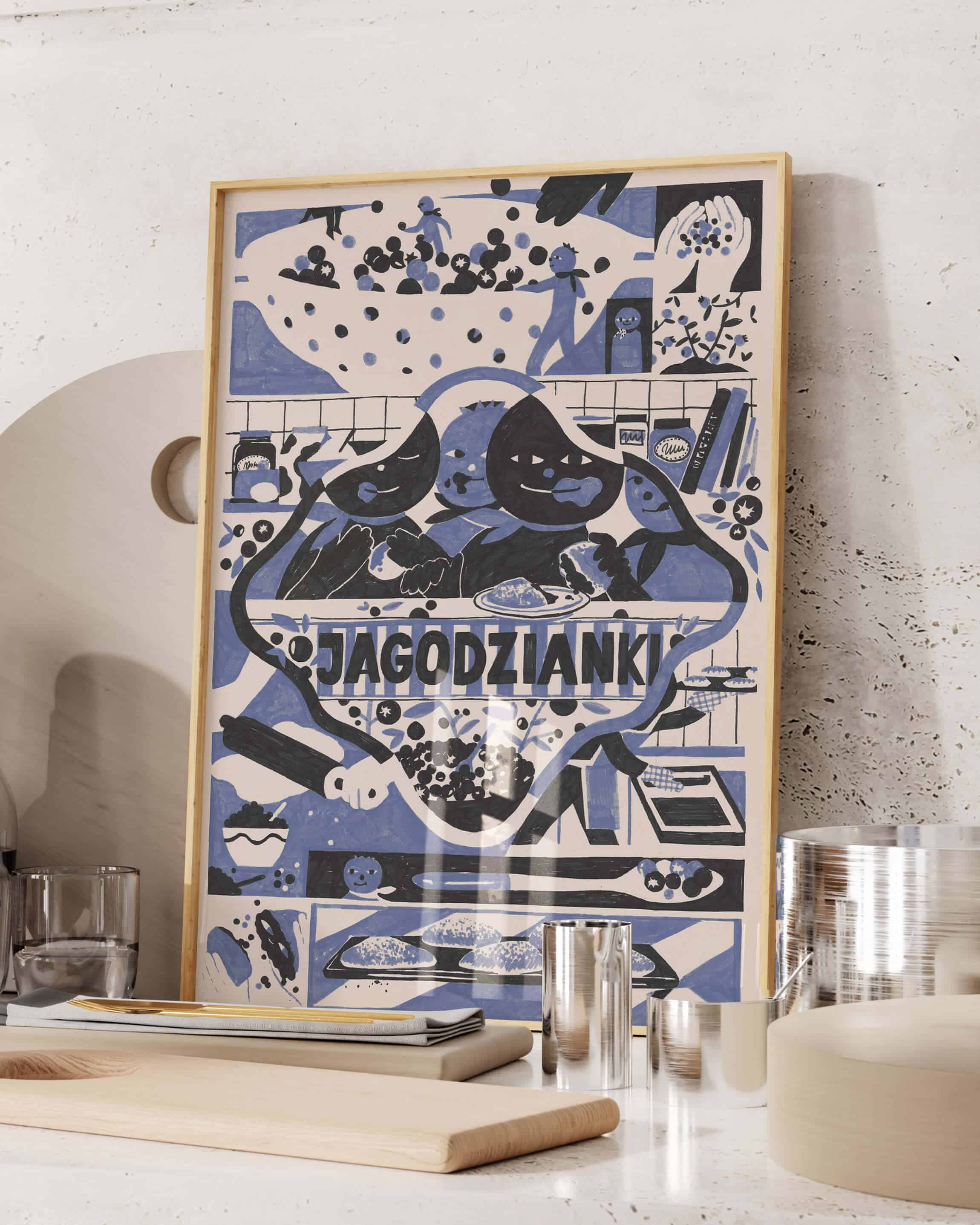 Oryginalny plakat JAGODZIANKI  autorstwa Karoliny Lubaszko w formacie 30×40, 40×50, 50×70 cm.