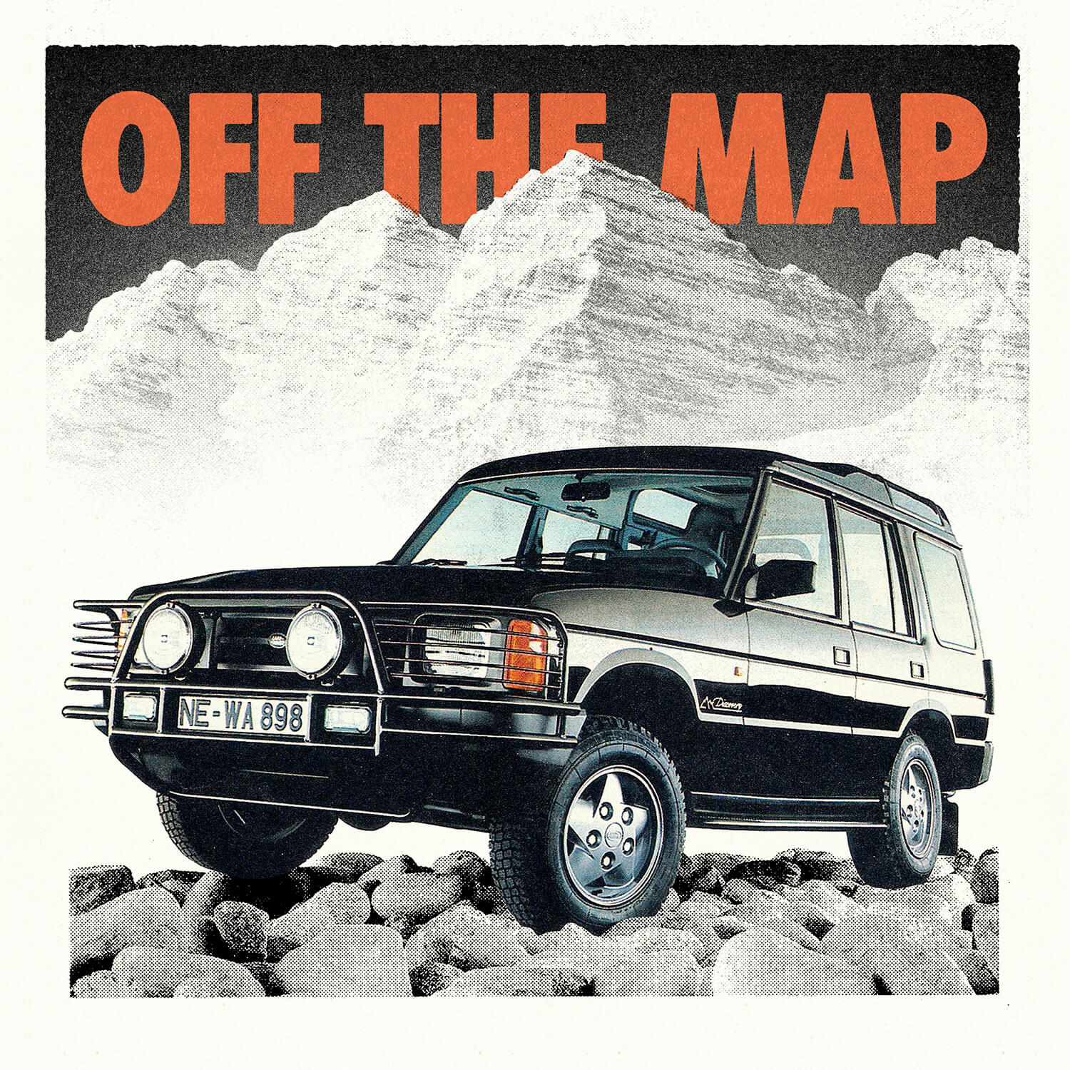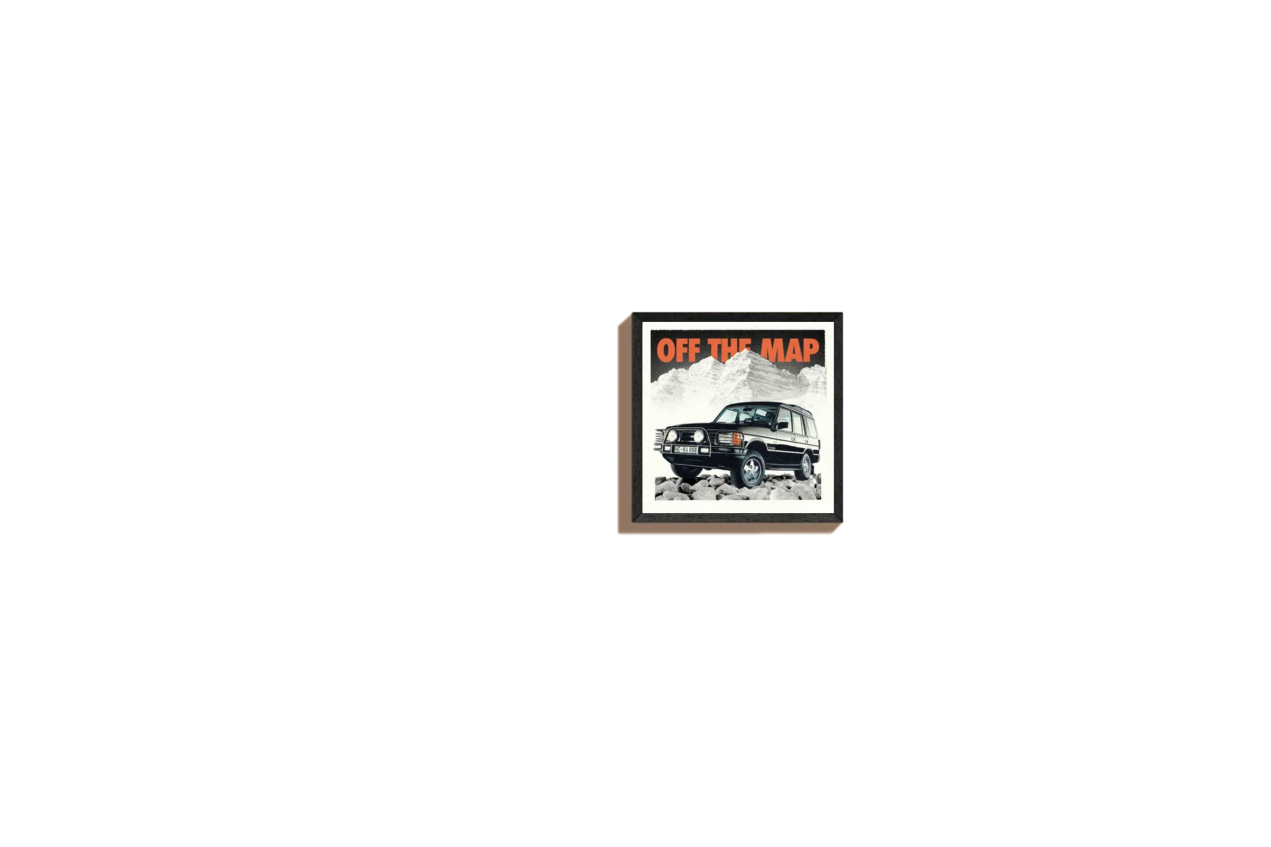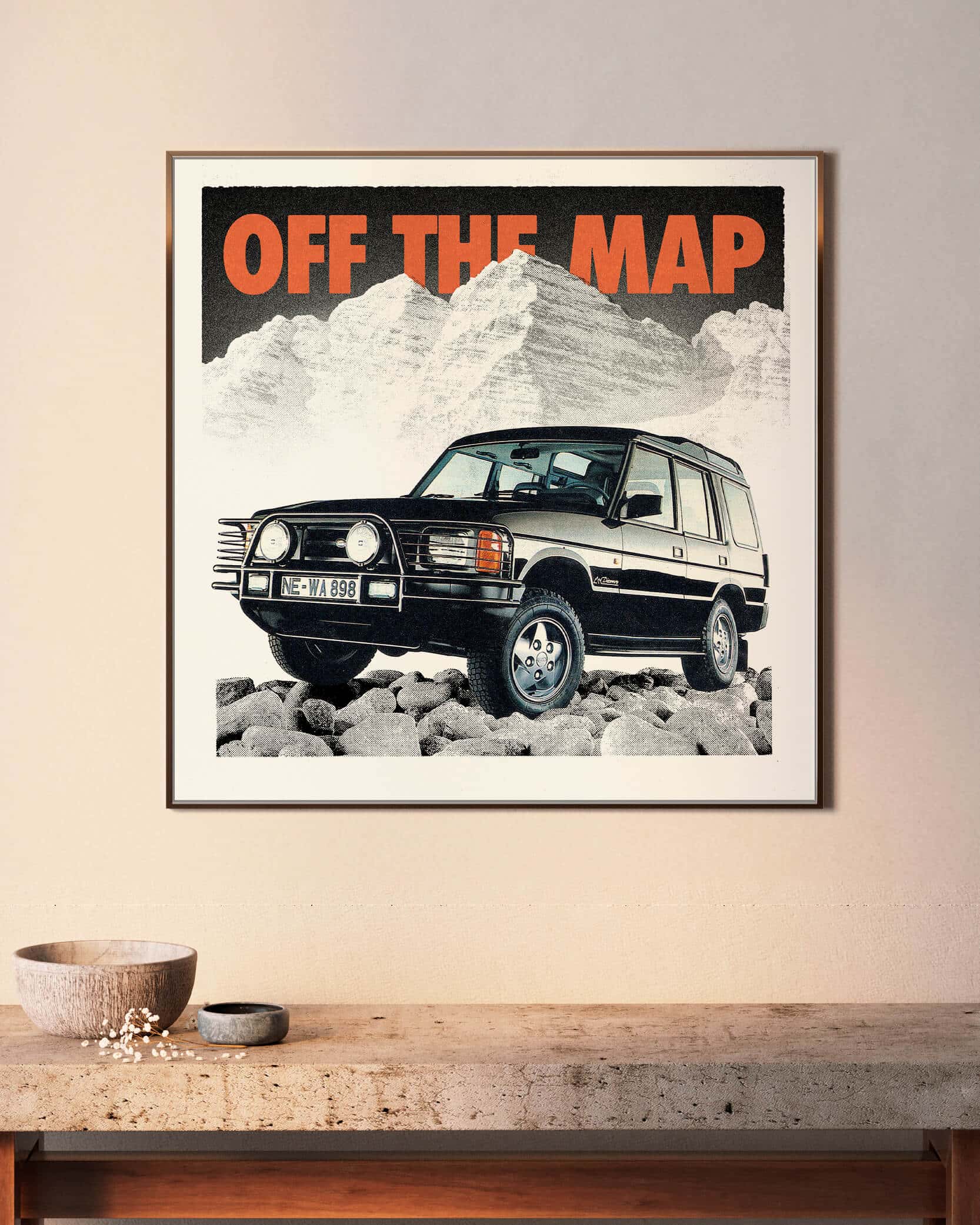 Oryginalny plakat motoryzacyjny Land Rover – OFF THE MAP  autorstwa Ładne.co w formacie 25×25, 32×32 i 50×50 cm.