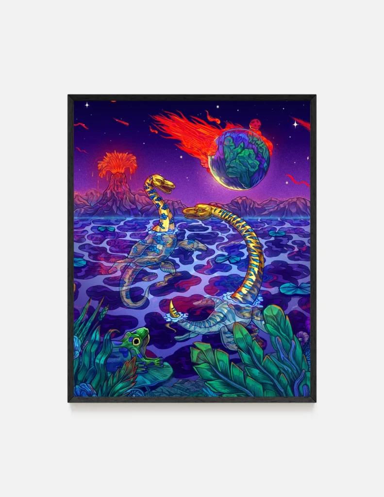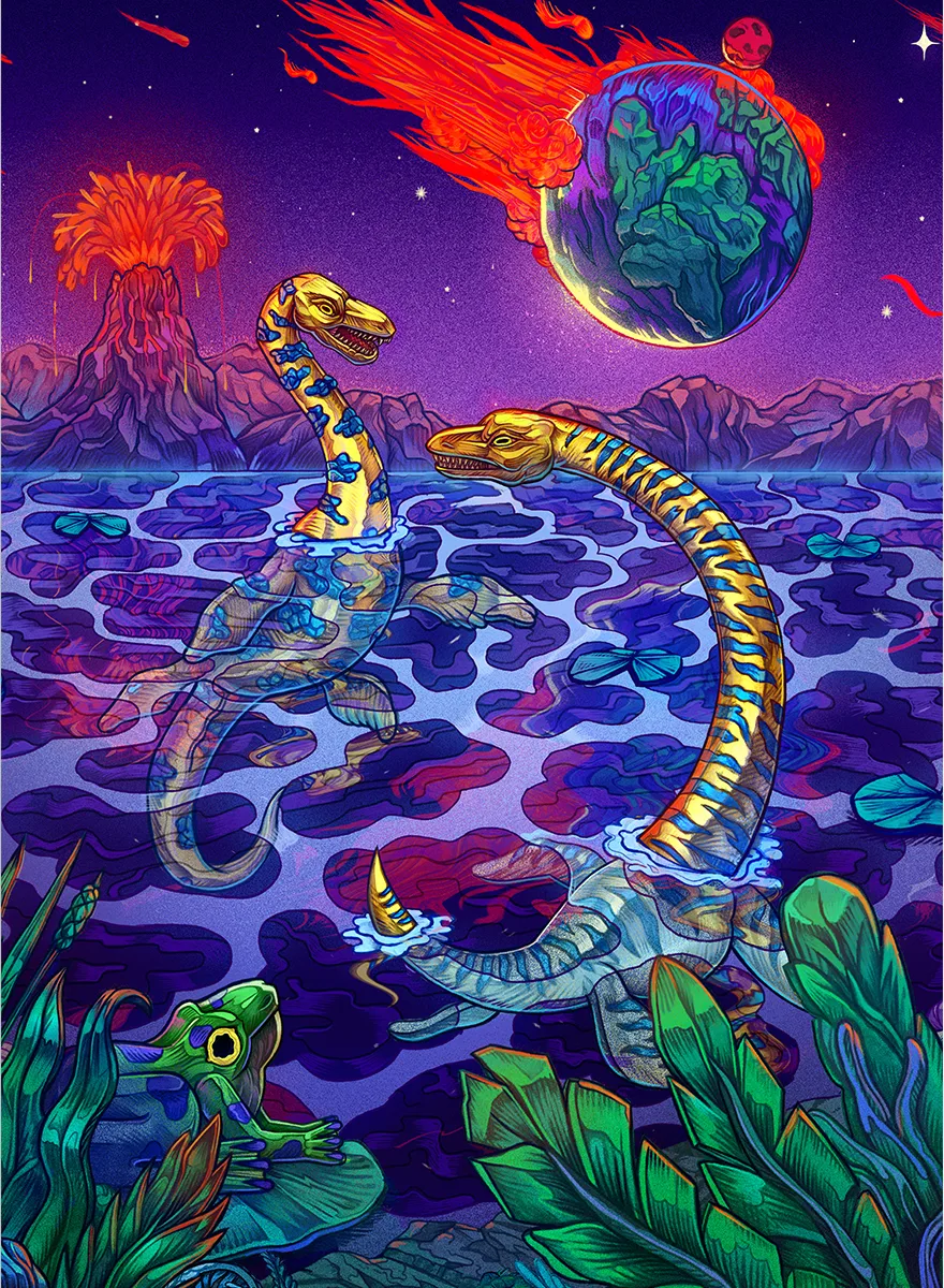 Oryginalny plakat z dinozaurem PLEJOZAURY autorstwa Lisa Kuli